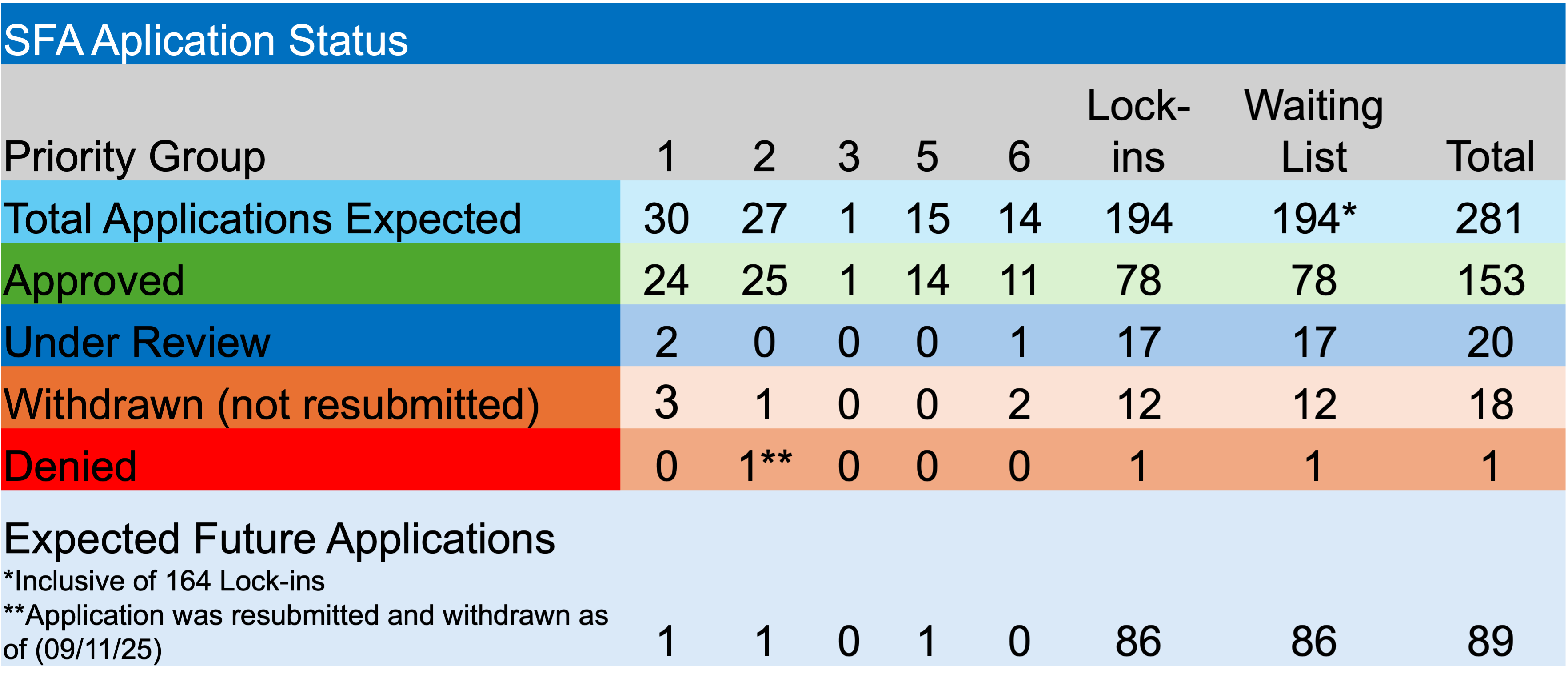 Regarding the waitlist, I am still trying to understand why one still exists since the legislation made it clear that funds not submitting an initial application seeking SFA by December 31, 2025, would not be permitted to do so following that date. Not only does one still exist, but there are more than 80 funds residing on it.