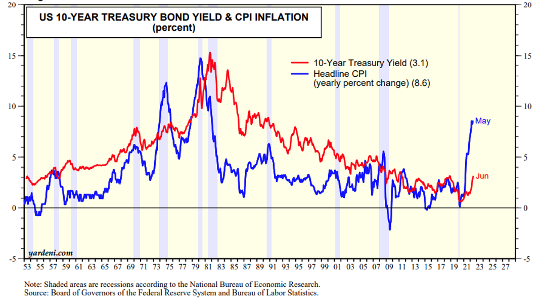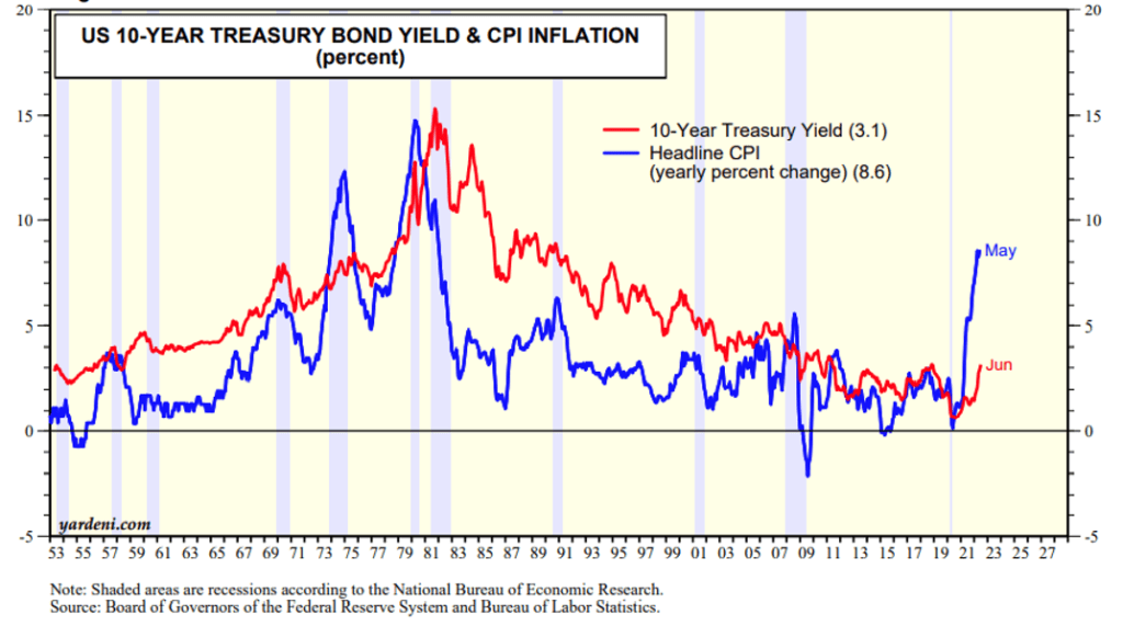 It makes no sense to me and many others why the investment community continues to accept such a ridiculously low return on US government bonds given the inflationary environment that won’t likely collapse as quickly as it rose. Again, my premise is that 4 decades of falling US interest rates that culminated in historically low rates associated with the Covid-19 crisis have clouded our judgment and anchored us to believe that interest rates will remain low forever and ever. All one needs to do is look at the yield on the US 10-year Treasury Note for the 30 years prior to 1982.