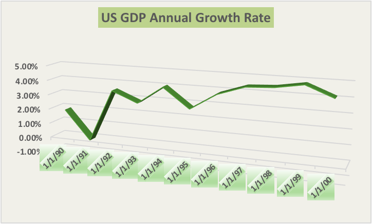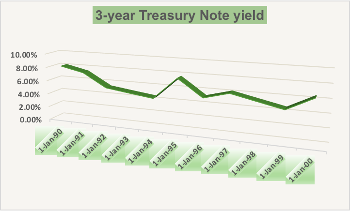 The chart above highlights the yield on the 3-year Treasury note during the go-go ’90s. The average yield during that decade was 5.98%, a 1.6% premium to today’s yield. The ’90s was also one of the greatest periods ever experienced by the S&P 500 producing a >18% annual return. GDP growth averaged 3.3% during the same time frame. Clearly, a nearly 6% 3-year Treasury Note did little to tamp down US economic growth during the ’90s. Do we really believe that the Fed has gotten to a level of rates that would dramatically impact US growth, inflation, employment, etc.?