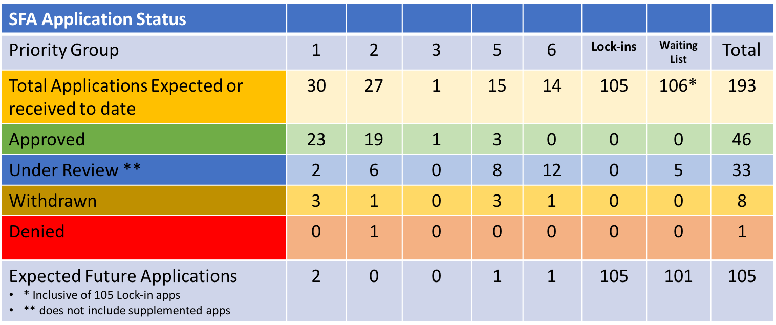In addition to the 5 approved accounts, there were 3 applications withdrawn, no applications that were denied, and none of the nine approved applications received their wire transfers. There were no additions to the “waiting list”, while one of the plans on the waiting list elected to lock in its valuation date. G.C.U. Local No. 96B Pension Plan filed to have their valuation date be 1/31/23. They are the second plan to use that date, while 103 have chosen 12/31/22.