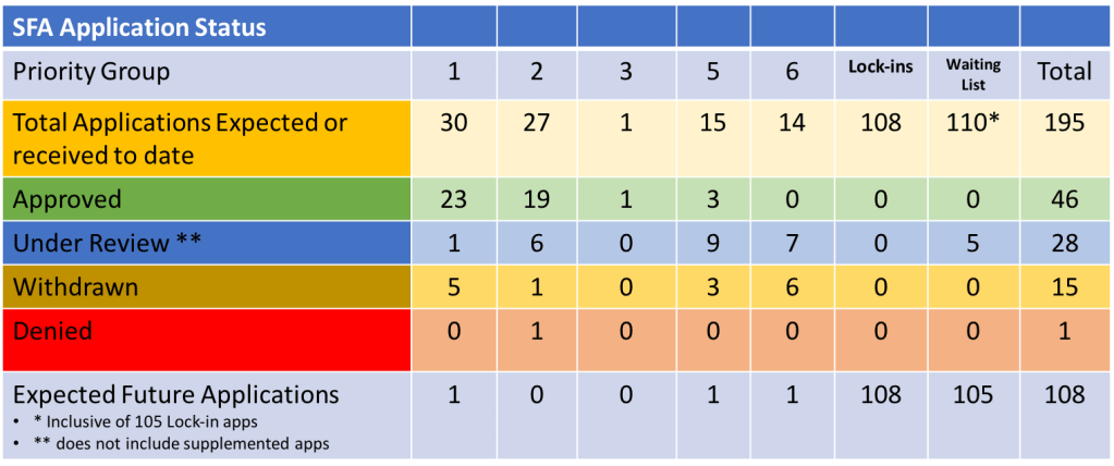 As of last week, five of the 110 funds residing on the waitlist had submitted applications to the PBGC. Those plans included, Laborers’ International Union of North America Local Union No. 1822 Pension Fund, Teamsters Local 11’s Pension Plan, UFCW Regional Pension Fund, IUE-CWA Pension Plan, and the Newspaper Guild International Pension Plan. I believe that the PBGC has 120 days to approve or reject the applications which has been the operating procedure for priority group plans (1-6).