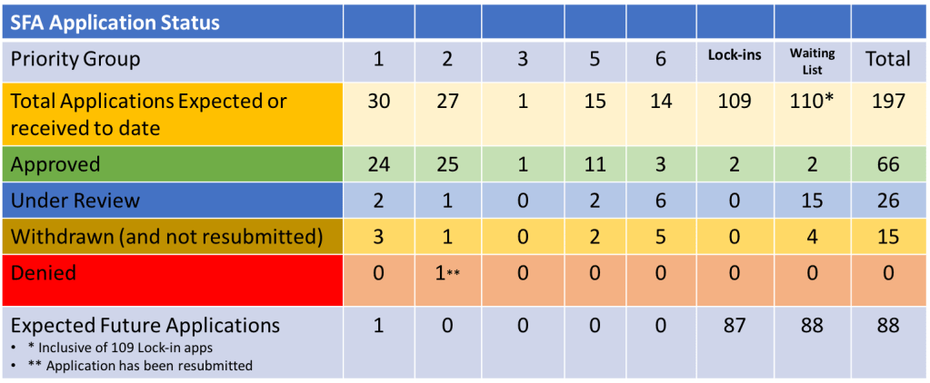 There was not a lot of activity during the last week, but three funds, America’s Family Benefit Retirement Plan, Union de Tronquistas de Puerto Rico Local 901 Pension Plan, and American Federation of Musicians and Employers’ Pension Plan (AFM) submitted revised applications seeking SFA. In the case of AFM, they withdrew an application after identifying a minor input error. They were permitted to correct the issue and immediately resubmit another revised application without losing their spot in the review process. Although the PBGC has 120-days from the submission of an application to act, it is expected that AFM will get a decision on its application before year-end, which would coincide with the original 120 day period.