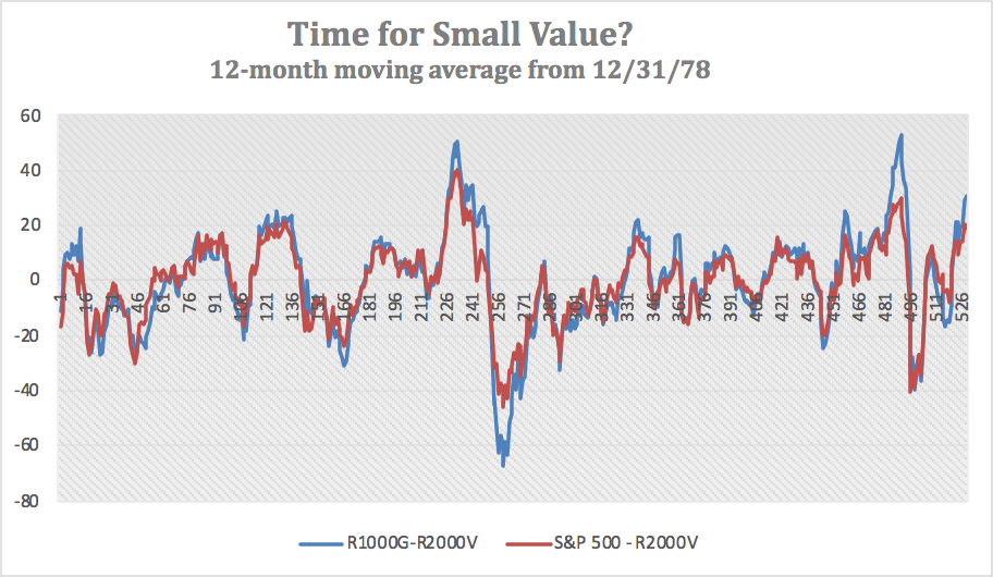 I am preparing for a session that I will conduct in late January for the FPPTA. I’ve been asked to speak about US equity indexes, which I’ve done before despite my current role at Ryan ALM, Inc. It is a fun topic and I’ve evolved it over the years to use index performance as a predictor of future relative performance. As most everyone in our industry appreciates, we have two primary equity cycles involving Growth and Value and Large cap and Small cap. The style cycles are driven by economic conditions, but often exacerbated by fund flows. We do have a tendency in our industry to overwhelm ideas and opportunities through massive asset movements.