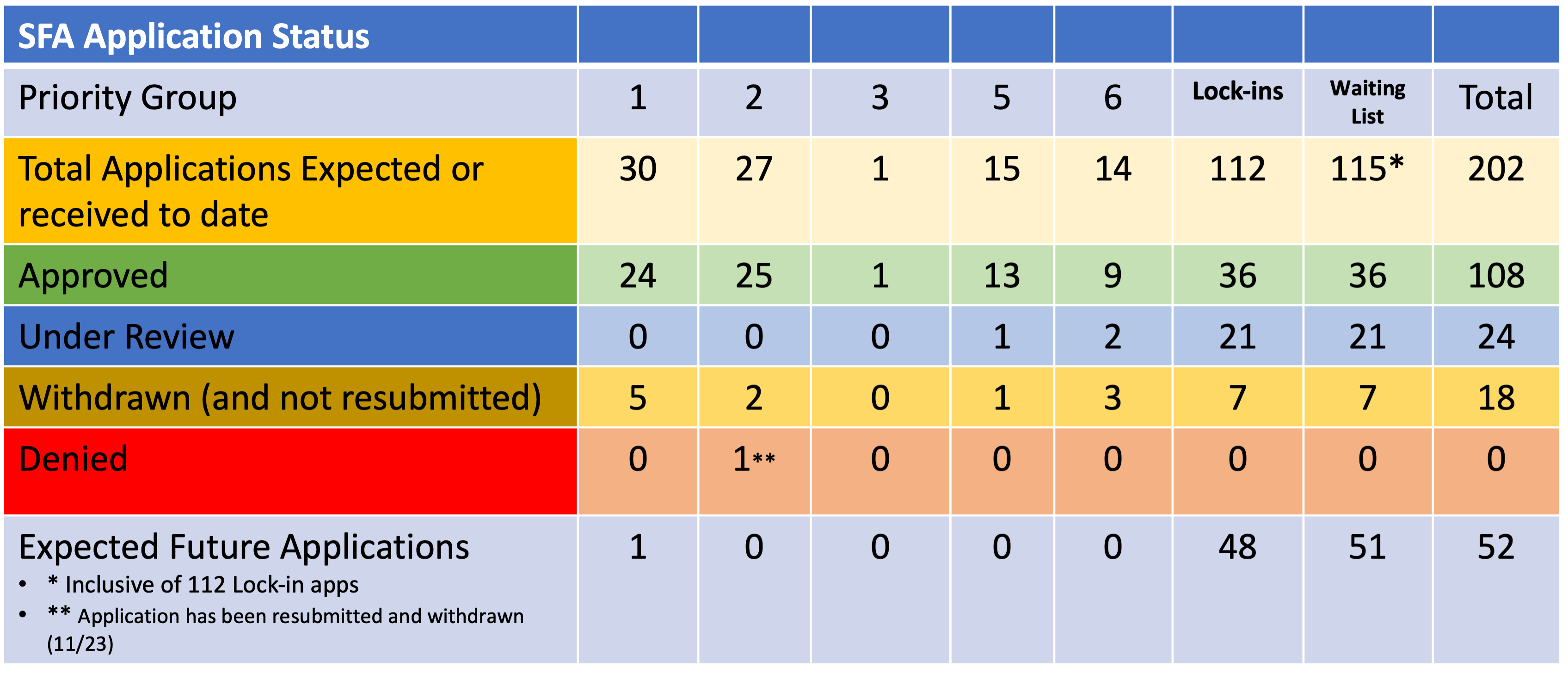 In other news, there was one application withdrawn, Warehouse Employees Union Local 169 and Employers Joint Pension Plan, from Elkins Park, PA, withdrew its initial application seeking nearly $90 million in SFA for just over 3,600 members of the plan.